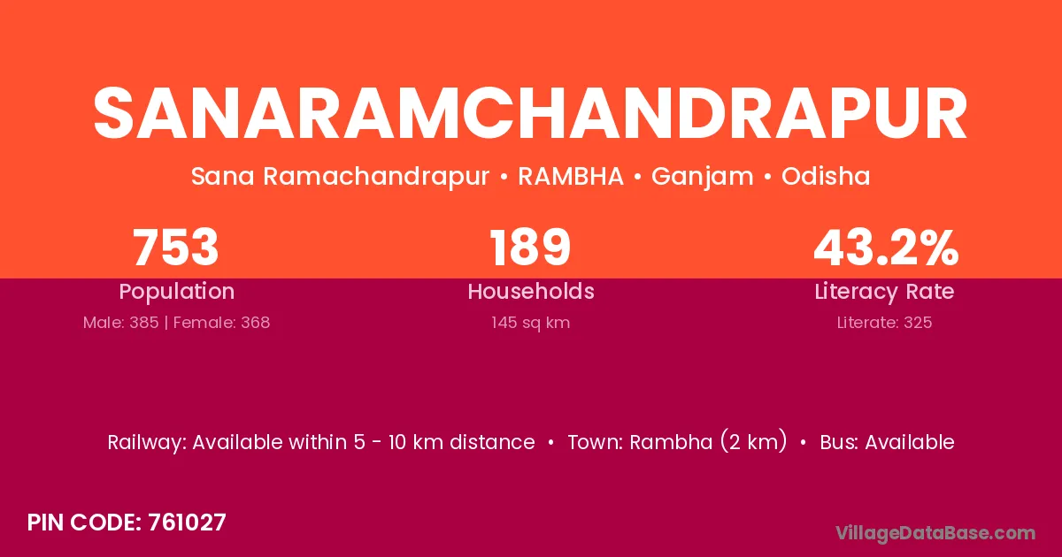 Rambha (2 km) is the nearest town to Sanaramchandrapur village for major economic activities and is located approximately 2 km away.