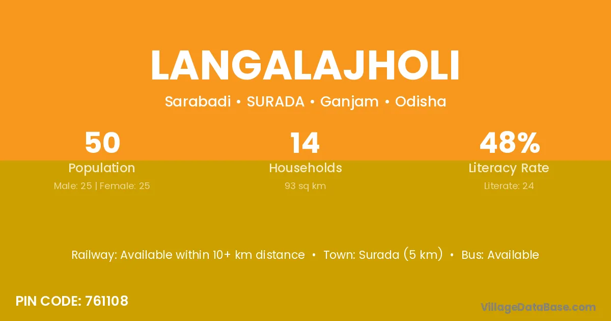 Surada (5 km) is the nearest town to Langalajholi village for major economic activities and is located approximately 5 km away.