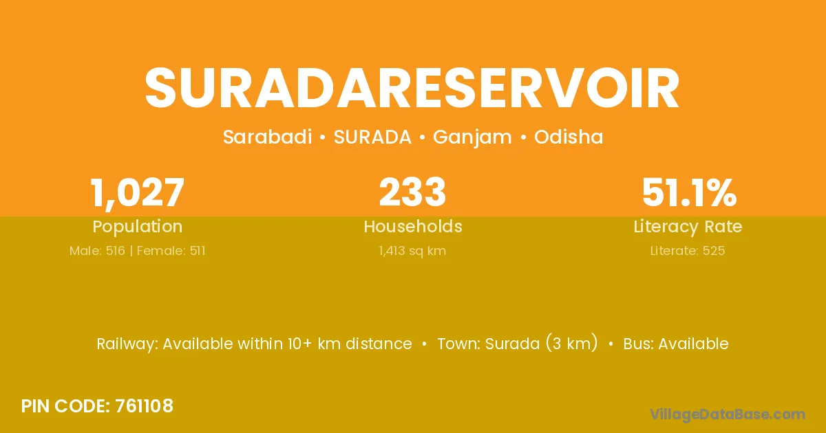 Suradareservoir village has a total population of 1,027 people, of which 516 are males and 511 are females.