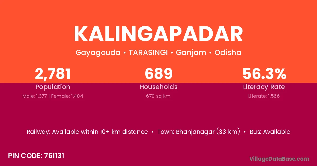 Bhanjanagar (33 km) is the nearest town to Kalingapadar village for major economic activities and is located approximately 33 km away.