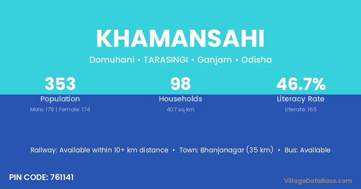Khamansahi village has a total population of 353 people, of which 179 are males and 174 are females.