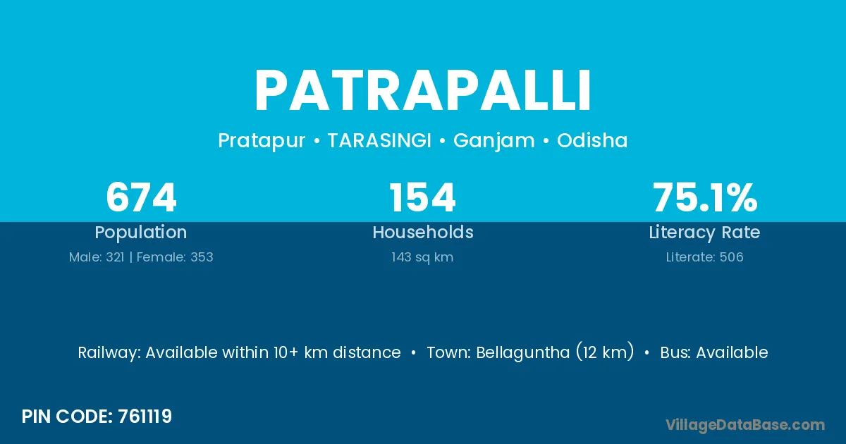 Bellaguntha (12 km) is the nearest town to Patrapalli village for major economic activities and is located approximately 12 km away.