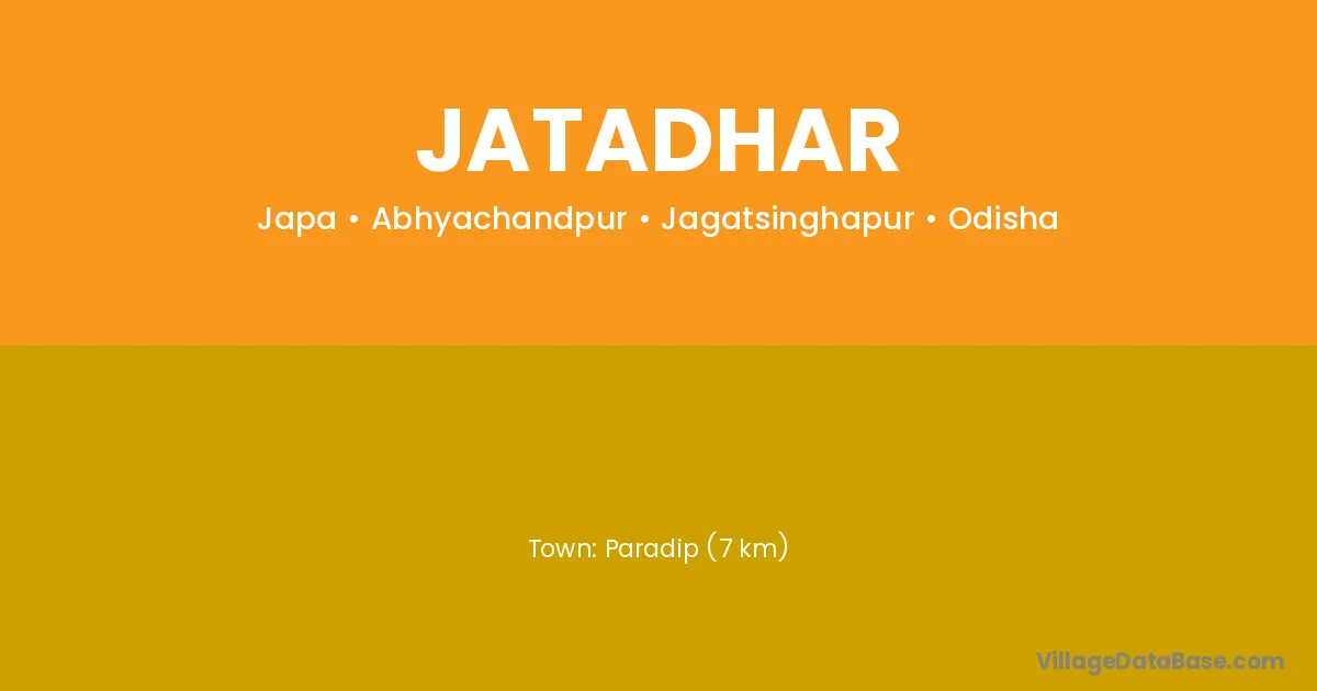 Paradip (7 km) is the nearest town to Jatadhar village for major economic activities and is located approximately 7 km away.