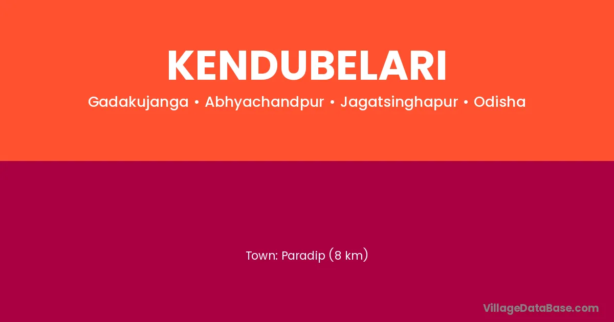 Paradip (8 km) is the nearest town to Kendubelari village for major economic activities and is located approximately 8 km away.
