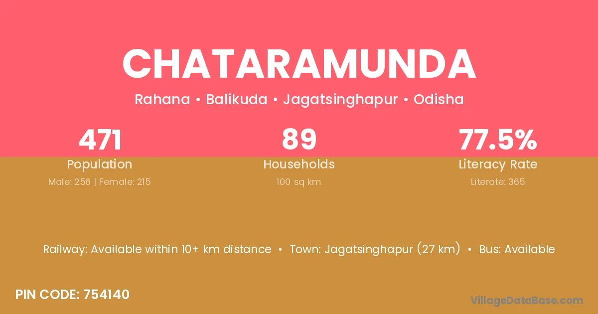 Jagatsinghapur (27 km) is the nearest town to Chataramunda village for major economic activities and is located approximately 27 km away.