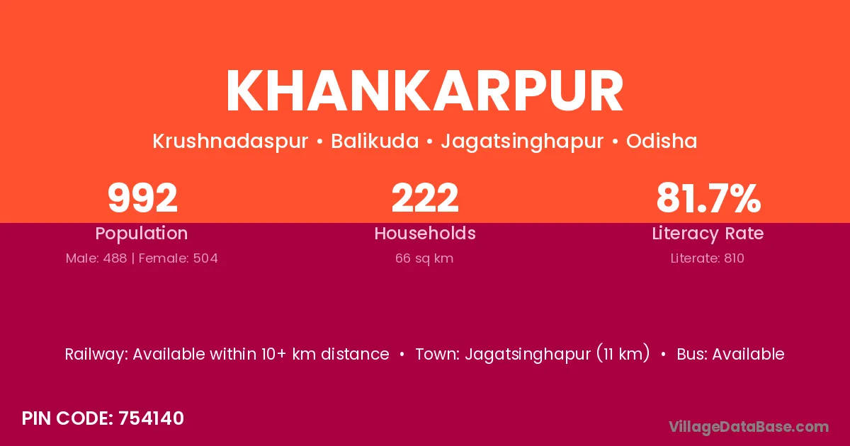 Jagatsinghapur (11 km) is the nearest town to Khankarpur village for major economic activities and is located approximately 11 km away.