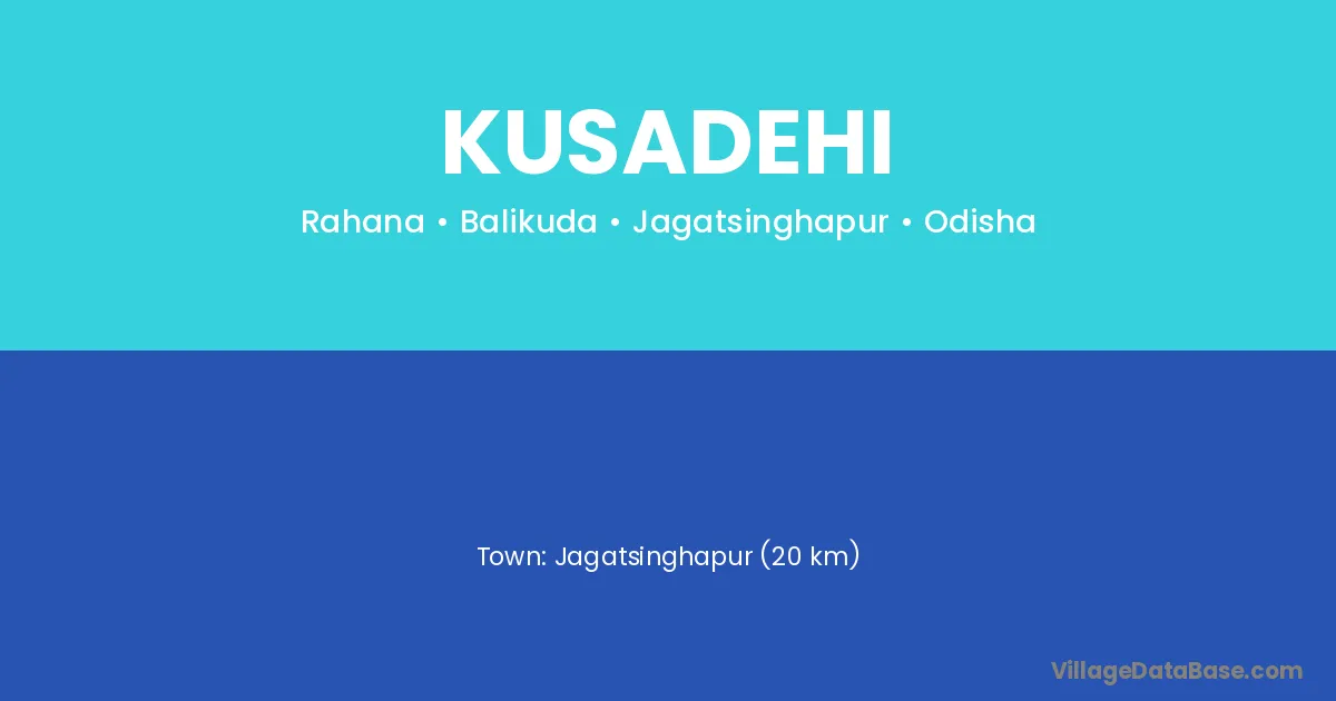 Jagatsinghapur (20 km) is the nearest town to Kusadehi village for major economic activities and is located approximately 20 km away.