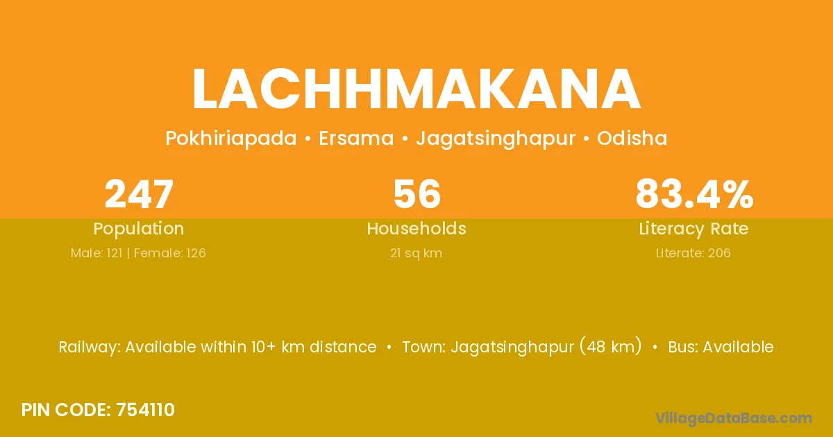 Jagatsinghapur (48 km) is the nearest town to Lachhmakana village for major economic activities and is located approximately 48 km away.