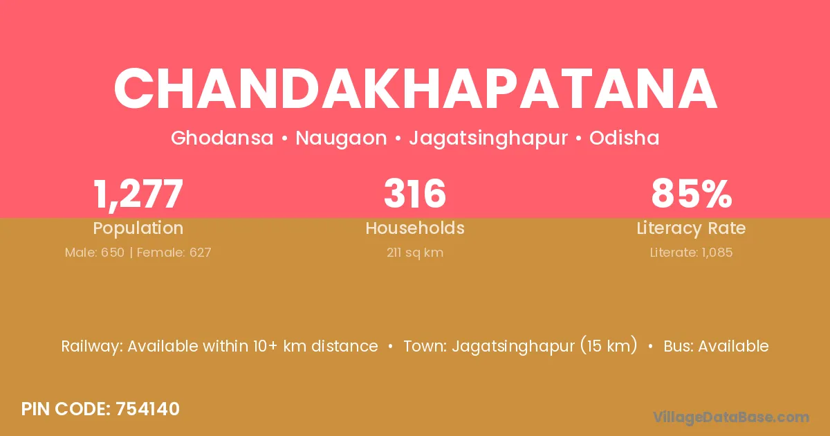 Chandakhapatana village has a total population of 1,277 people, of which 650 are males and 627 are females.