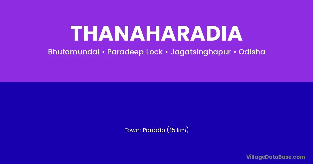 Paradip (15 km) is the nearest town to Thanaharadia village for major economic activities and is located approximately 15 km away.