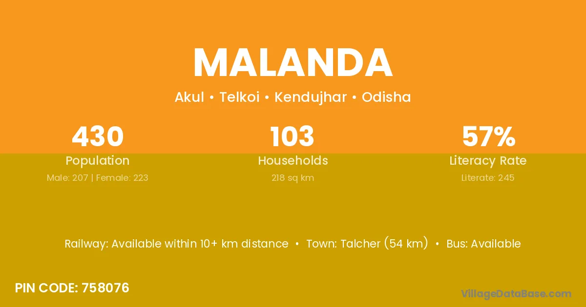 Jagatsinghapur (17 km) is the nearest town to Malanda village for major economic activities and is located approximately 17 km away.