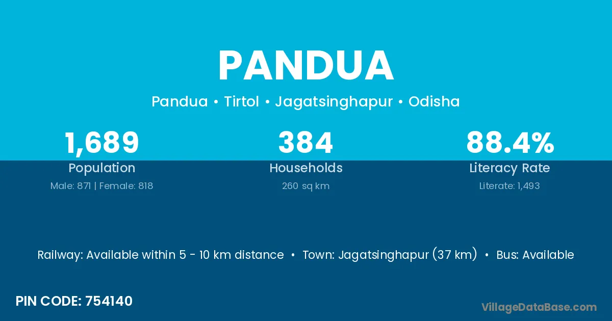 Jagatsinghapur (37 km) is the nearest town to Pandua village for major economic activities and is located approximately 37 km away.