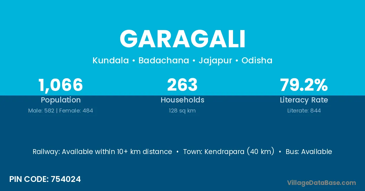 Kendrapara (40 km) is the nearest town to Garagali village for major economic activities and is located approximately 40 km away.