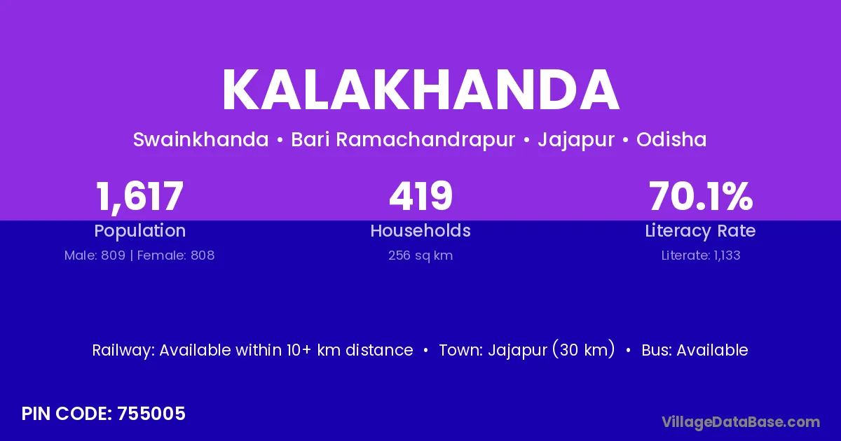 Jajapur (30 km) is the nearest town to Kalakhanda village for major economic activities and is located approximately 30 km away.