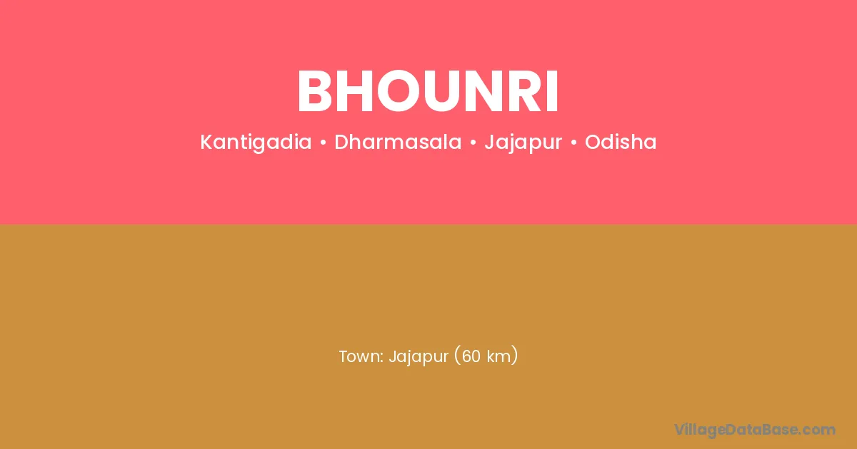 Jajapur (60 km) is the nearest town to Bhounri village for major economic activities and is located approximately 60 km away.