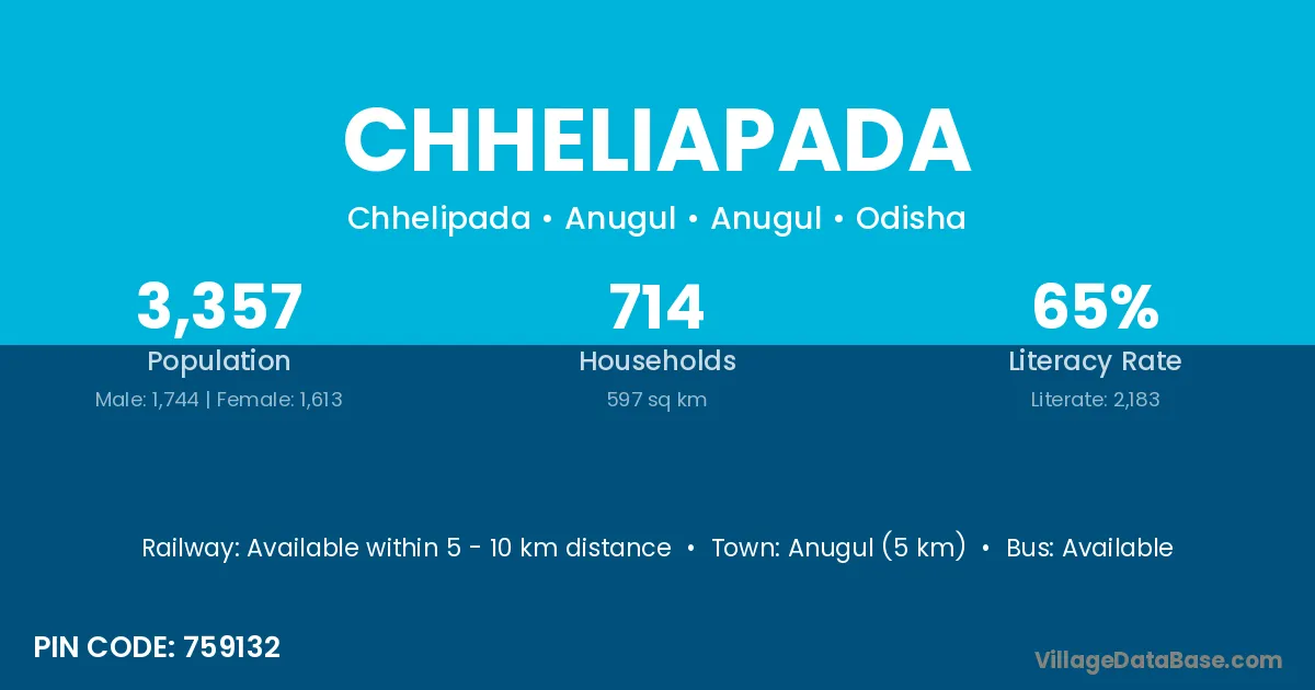 Jajapur (45 km) is the nearest town to Chheliapada village for major economic activities and is located approximately 45 km away.