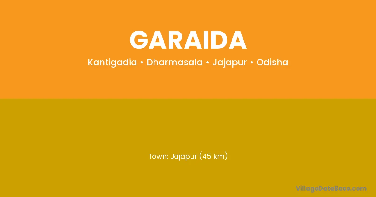 Jajapur (45 km) is the nearest town to Garaida village for major economic activities and is located approximately 45 km away.