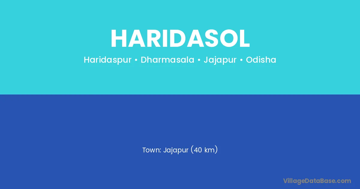 Jajapur (40 km) is the nearest town to Haridasol village for major economic activities and is located approximately 40 km away.