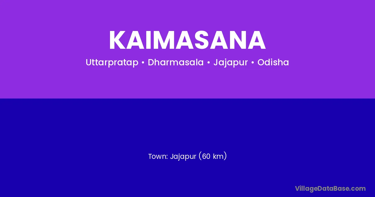 Jajapur (60 km) is the nearest town to Kaimasana village for major economic activities and is located approximately 60 km away.