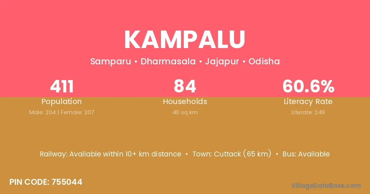 Cuttack (65 km) is the nearest town to Kampalu village for major economic activities and is located approximately 65 km away.