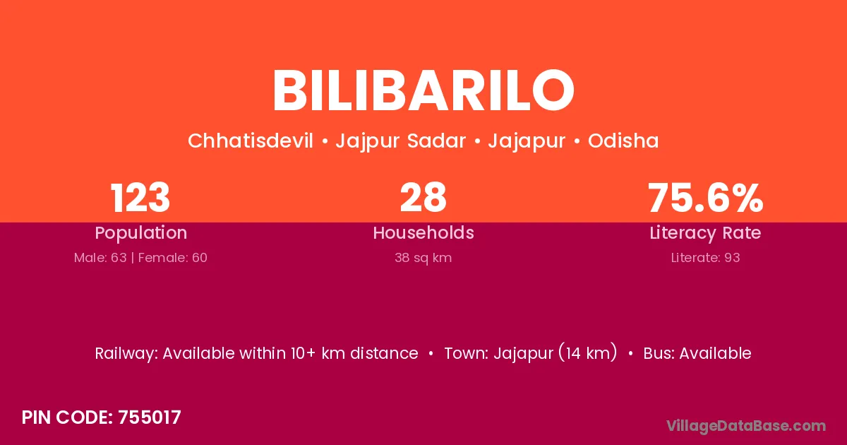 Jajapur (14 km) is the nearest town to Bilibarilo village for major economic activities and is located approximately 14 km away.