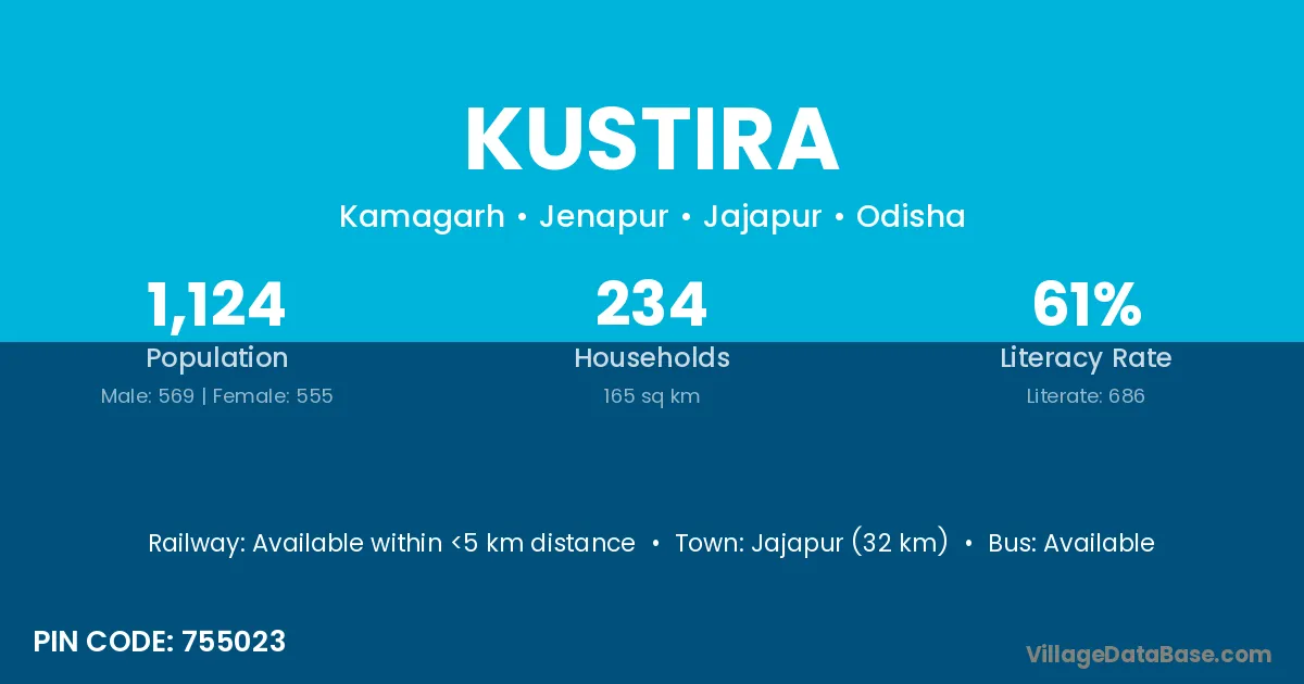 Jajapur (32 km) is the nearest town to Kustira village for major economic activities and is located approximately 32 km away.
