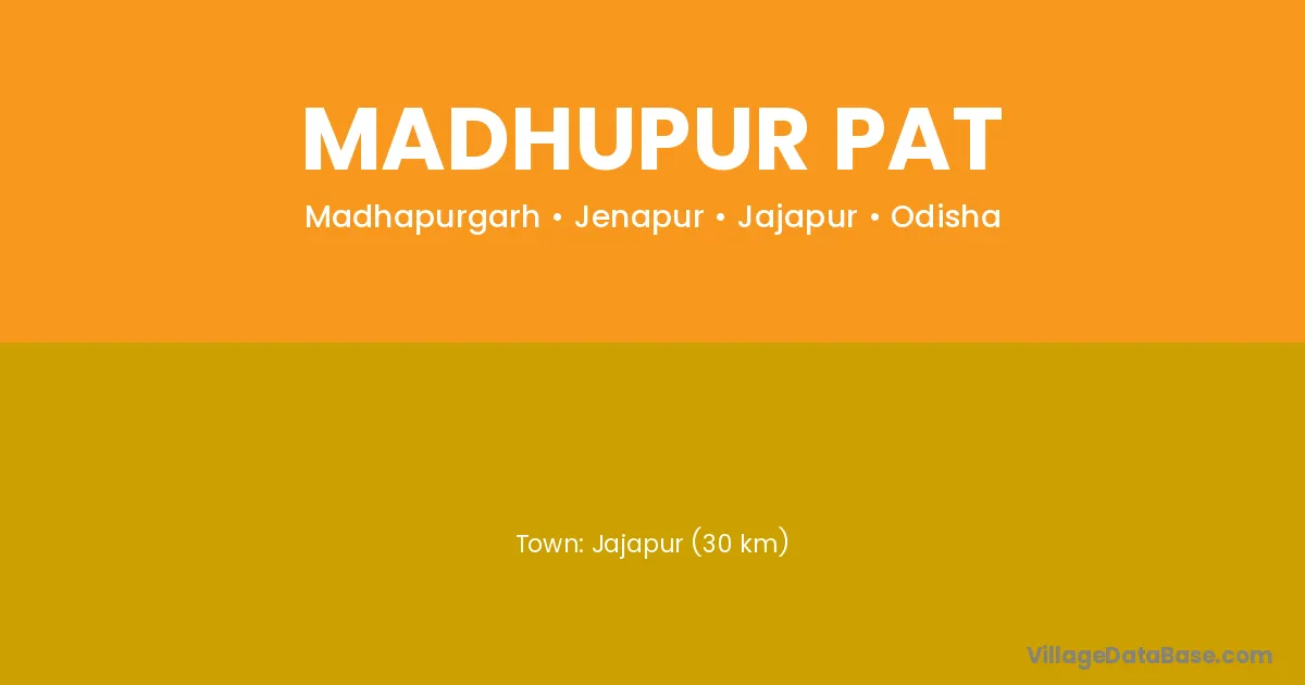 Madhupur Pat village is located in the Jenapur Tehsil of the Jajapur district in Odisha .