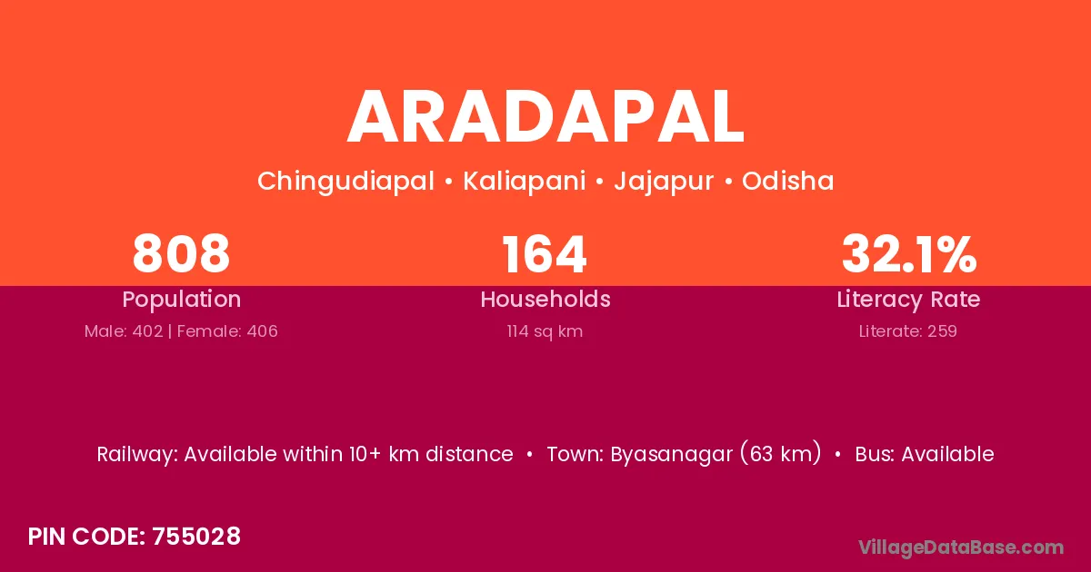 Byasanagar (63 km) is the nearest town to Aradapal village for major economic activities and is located approximately 63 km away.