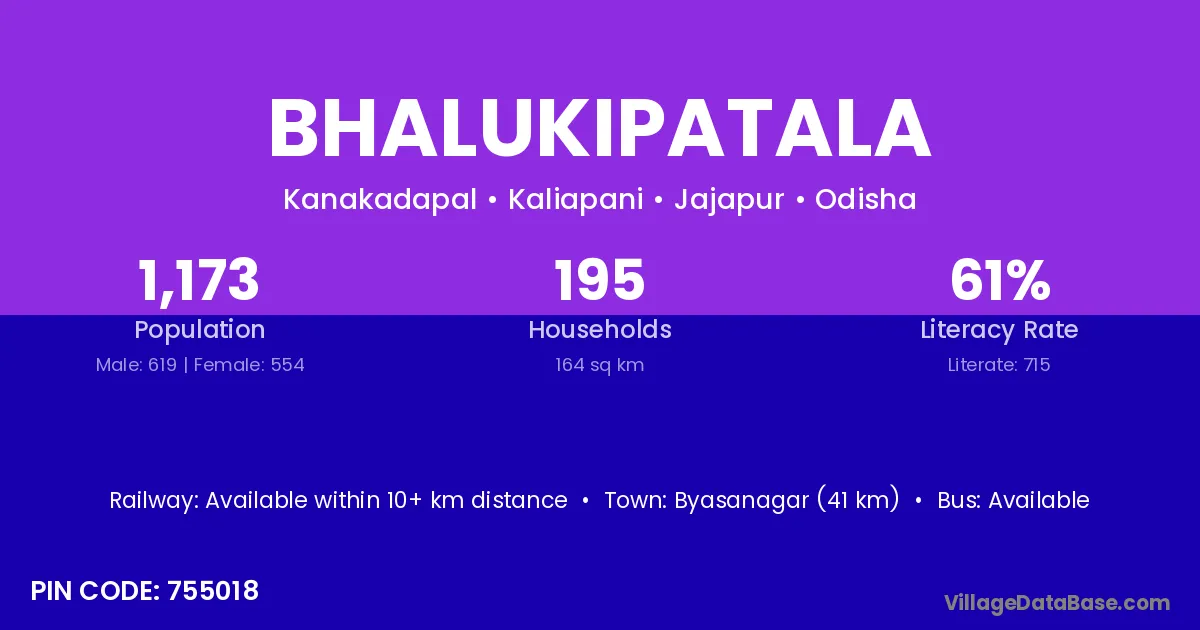 Byasanagar (41 km) is the nearest town to Bhalukipatala village for major economic activities and is located approximately 41 km away.
