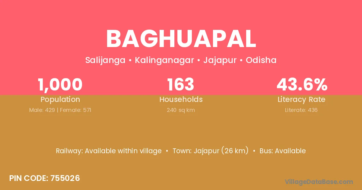 Jajapur (26 km) is the nearest town to Baghuapal village for major economic activities and is located approximately 26 km away.