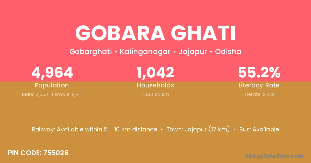 Jajapur (17 km) is the nearest town to Gobara Ghati village for major economic activities and is located approximately 17 km away.