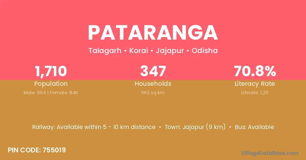 Jajapur (9 km) is the nearest town to Pataranga village for major economic activities and is located approximately 9 km away.