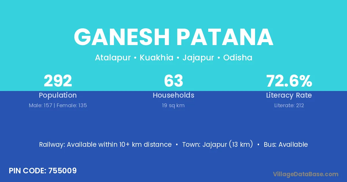Jajapur (13 km) is the nearest town to Ganesh Patana village for major economic activities and is located approximately 13 km away.
