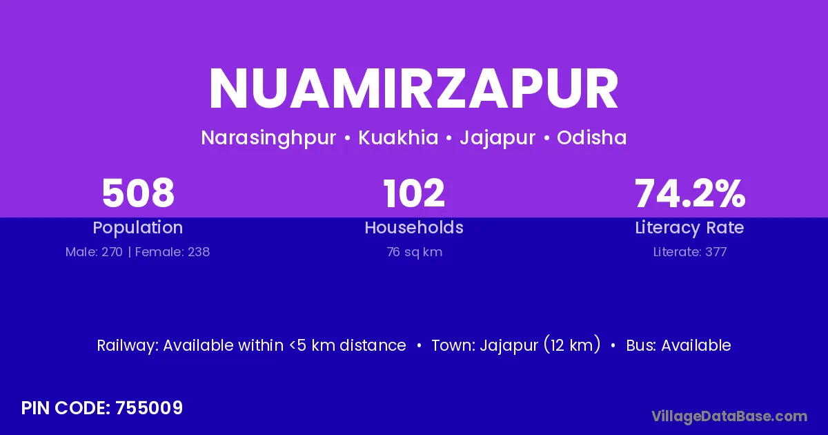Jajapur (12 km) is the nearest town to Nuamirzapur village for major economic activities and is located approximately 12 km away.