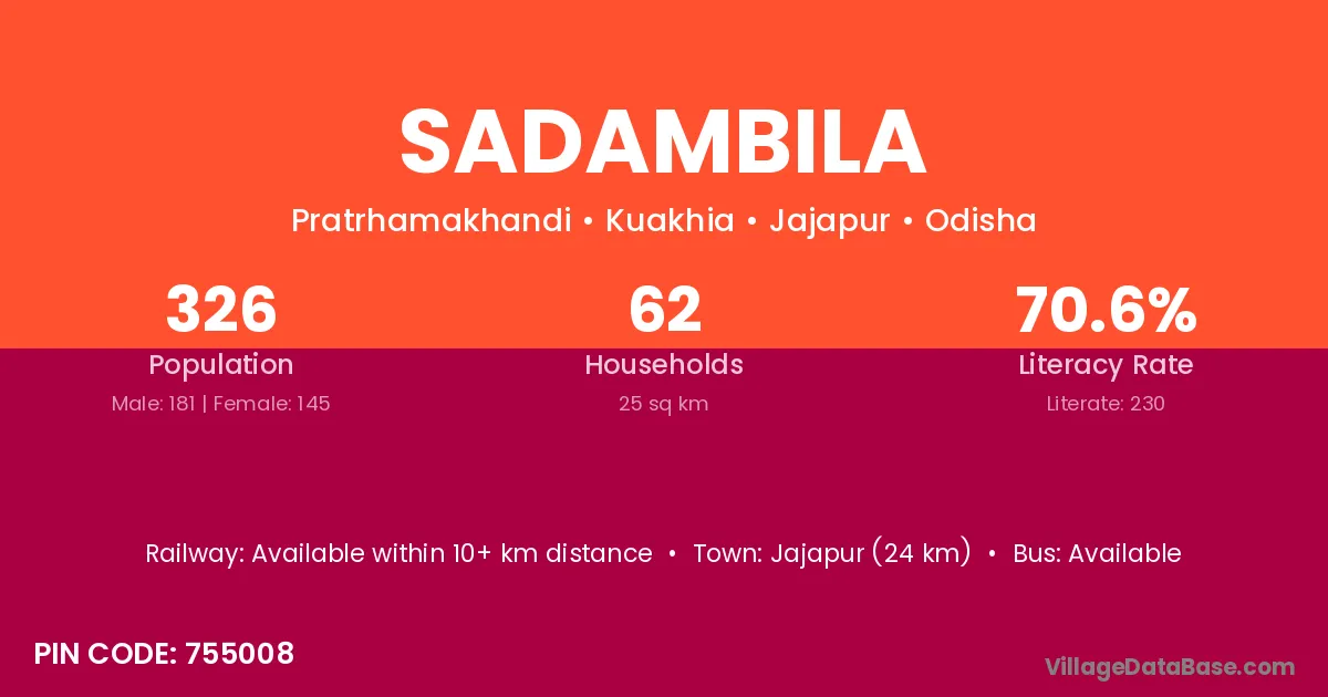 Jajapur (24 km) is the nearest town to Sadambila village for major economic activities and is located approximately 24 km away.