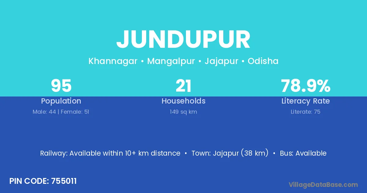 Jajapur (38 km) is the nearest town to Jundupur village for major economic activities and is located approximately 38 km away.