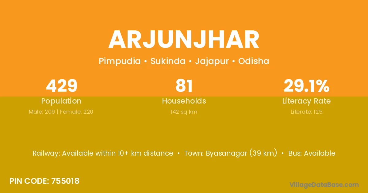 Byasanagar (39 km) is the nearest town to Arjunjhar village for major economic activities and is located approximately 39 km away.
