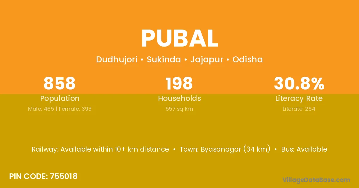 Byasanagar (34 km) is the nearest town to Pubal village for major economic activities and is located approximately 34 km away.