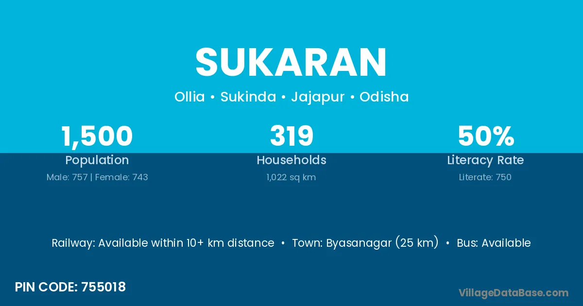 Byasanagar (25 km) is the nearest town to Sukaran village for major economic activities and is located approximately 25 km away.