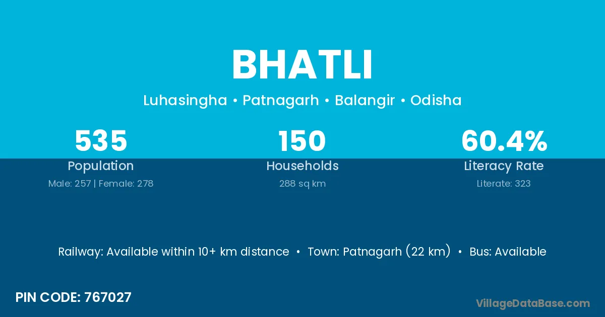 Belpahar (18 km) is the nearest town to Bhatli village for major economic activities and is located approximately 18 km away.