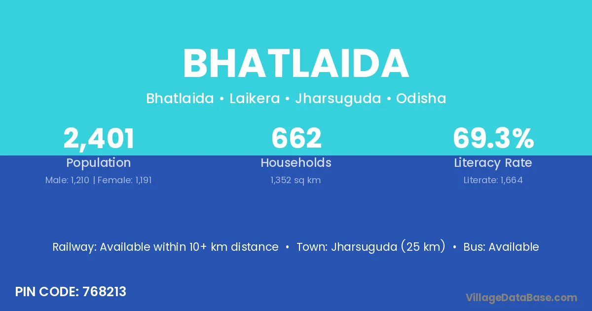 Bhatlaida village is located in the Laikera Tehsil of the Jharsuguda district in Odisha .