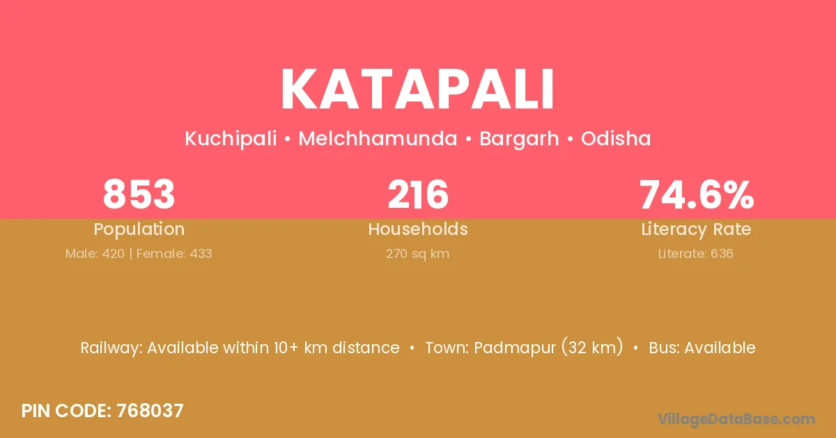 According to Census 2011 information, the village code of Katapali village is 768226.