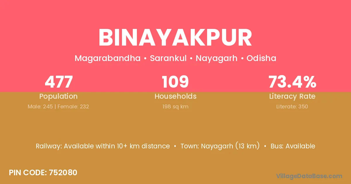Bhawanipatna (40 km) is the nearest town to Binayakpur village for major economic activities and is located approximately 40 km away.