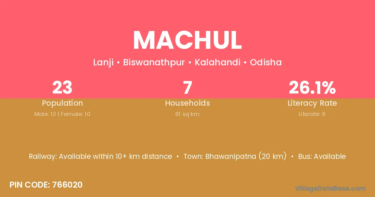 Bhawanipatna (20 km) is the nearest town to Machul village for major economic activities and is located approximately 20 km away.