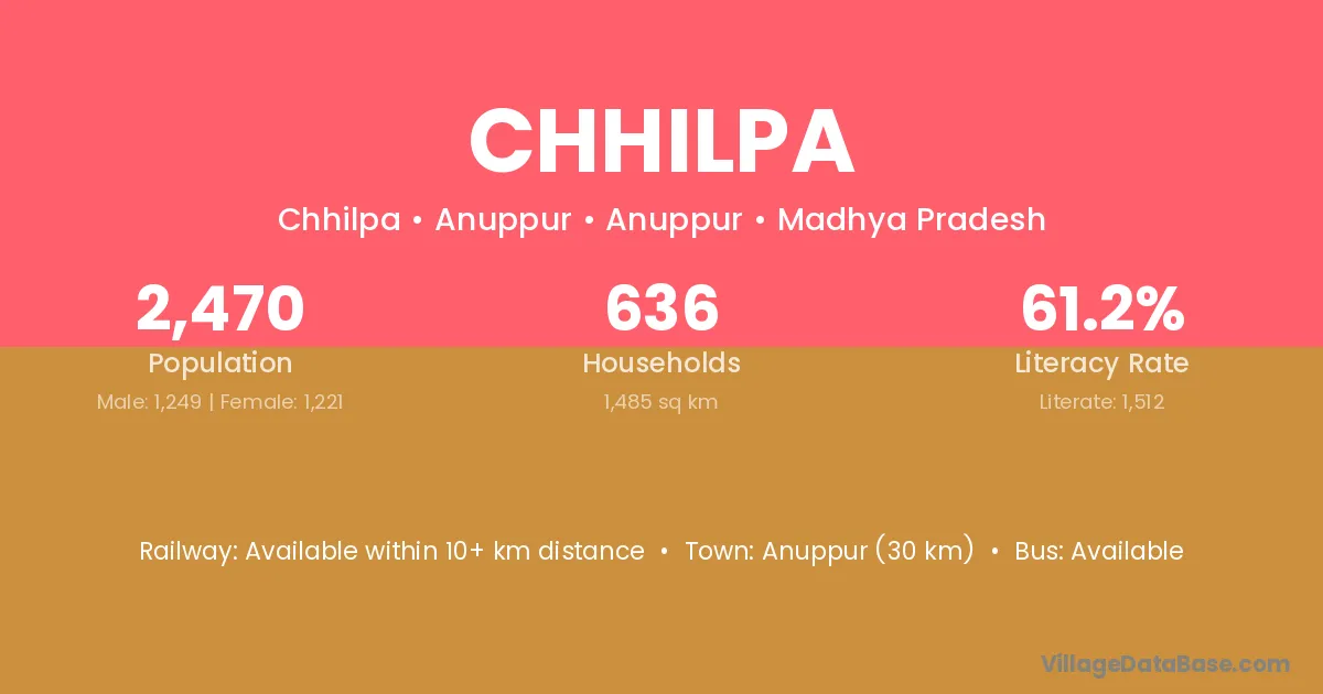 Chhilpa village has a total population of 2,534 people, of which 1,269 are males and 1,265 are females.