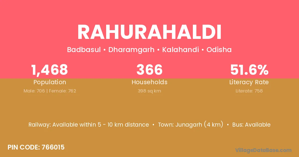 Junagarh (4 km) is the nearest town to Rahurahaldi village for major economic activities and is located approximately 4 km away.