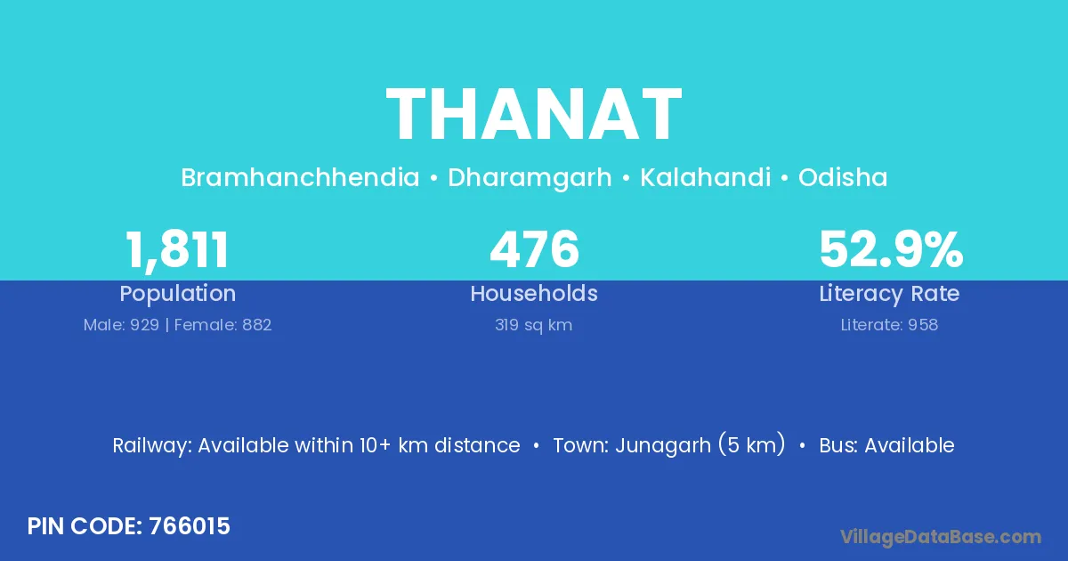 Junagarh (5 km) is the nearest town to Thanat village for major economic activities and is located approximately 5 km away.
