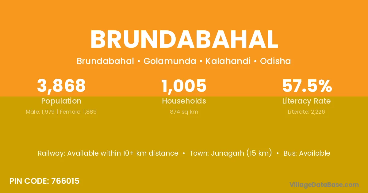 Brundabahal village has a total population of 3,868 people, of which 1,979 are males and 1,889 are females.