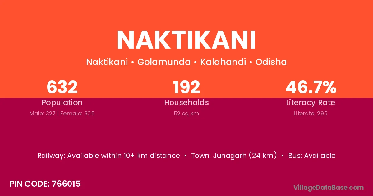 Junagarh (24 km) is the nearest town to Naktikani village for major economic activities and is located approximately 24 km away.