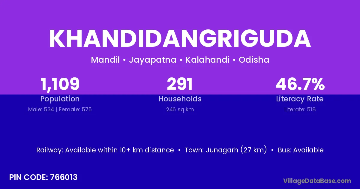 Junagarh (27 km) is the nearest town to Khandidangriguda village for major economic activities and is located approximately 27 km away.